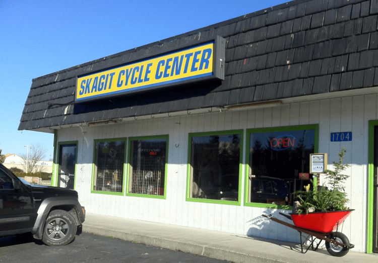 We’re proud to have Skagit Cycle Center as our featured group this session. The MVTB promotional wheelbarrow is out front of their Burlington shop.