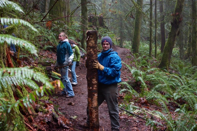 This past Saturday was a muddy, but very productive and fun work session. We were pleased to have three groups join us that day, SWITMO, the Arlington/Lakewood HS Mountain Bike Team, and Boy Scout Troop #1. We’d like to thank everyone who came out and lent a hand.