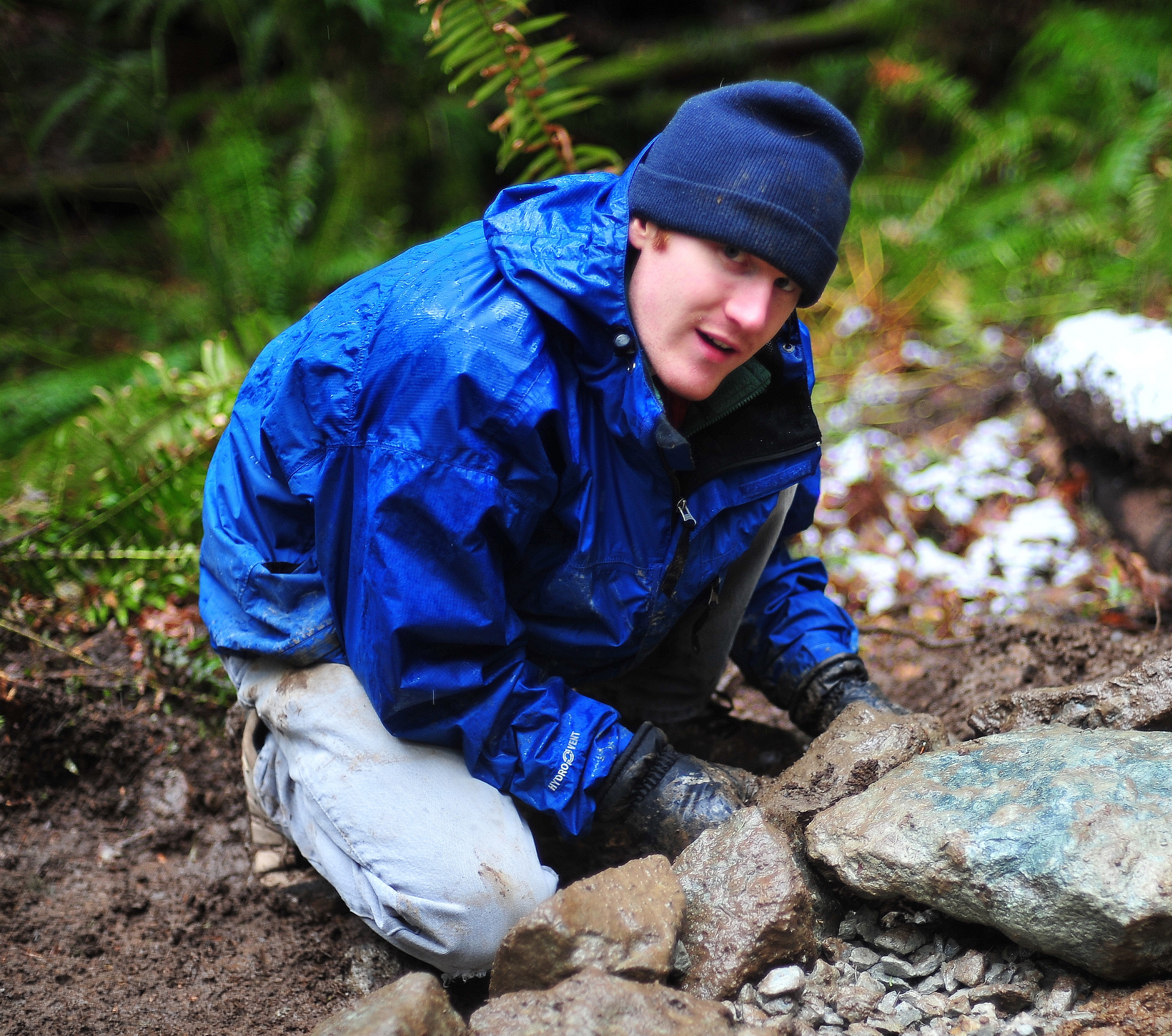 the day building a rock wall, widening a section of ‘Sidekick’ that was too