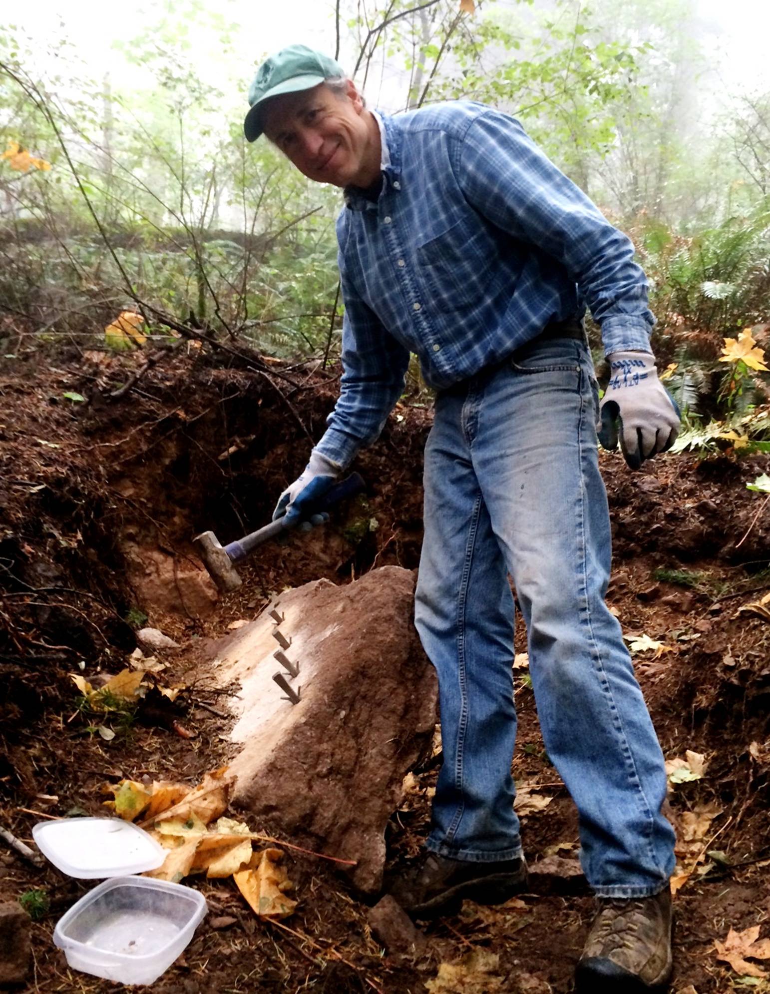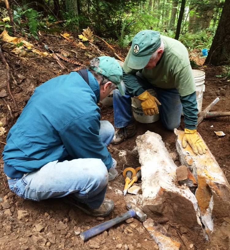 In the following photo Jerry Granahan (our crew leader) gets an opportunity to see what Art has been up to. He was wondering how Art kept coming up with such perfectly shaped rock…