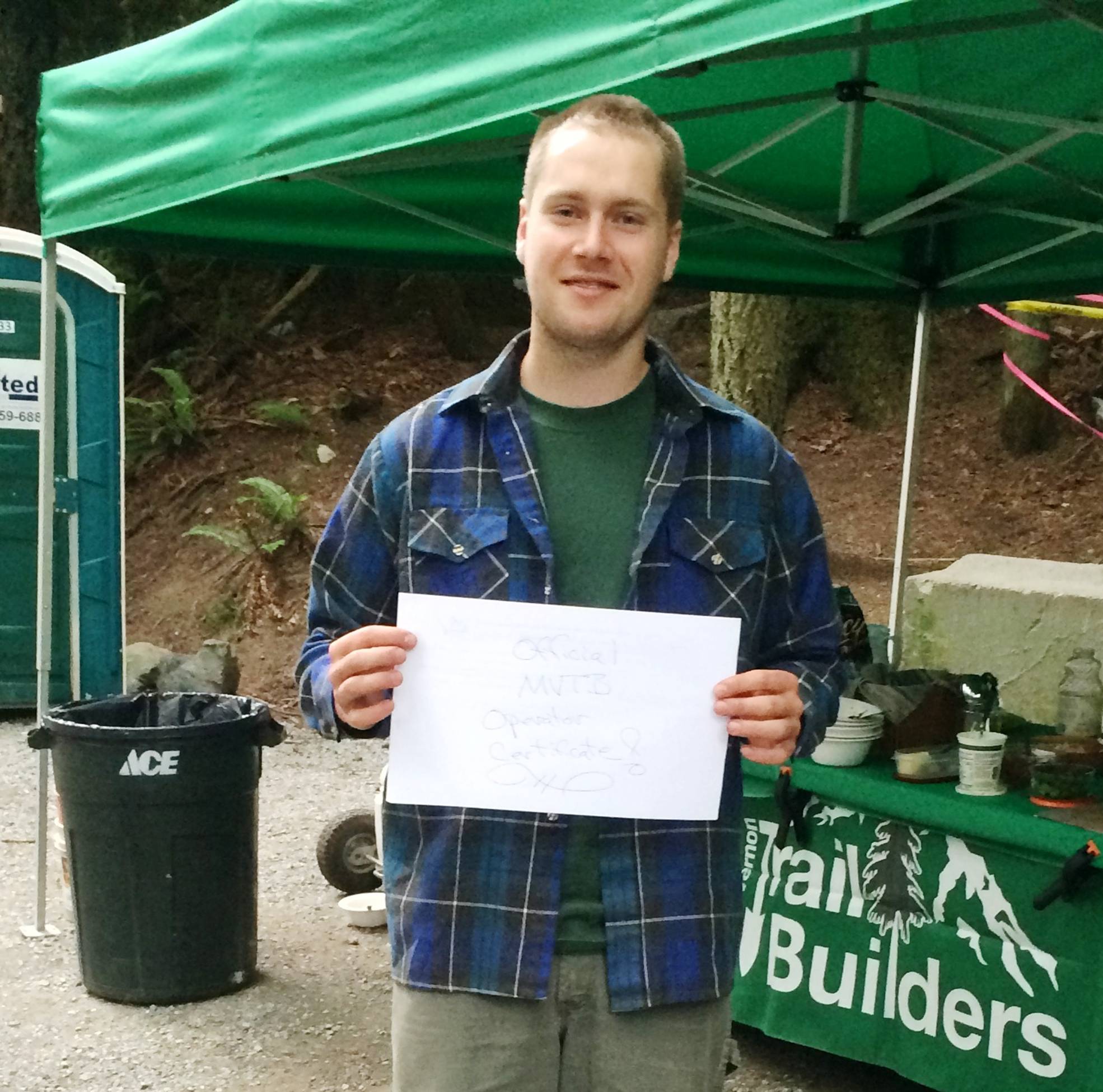 In this third image (below) Simon holds up his “MVTB Equipment Operator Certificate.” His Skagit Valley College nursing certificate will be hanging next to it this month. Congratulations!