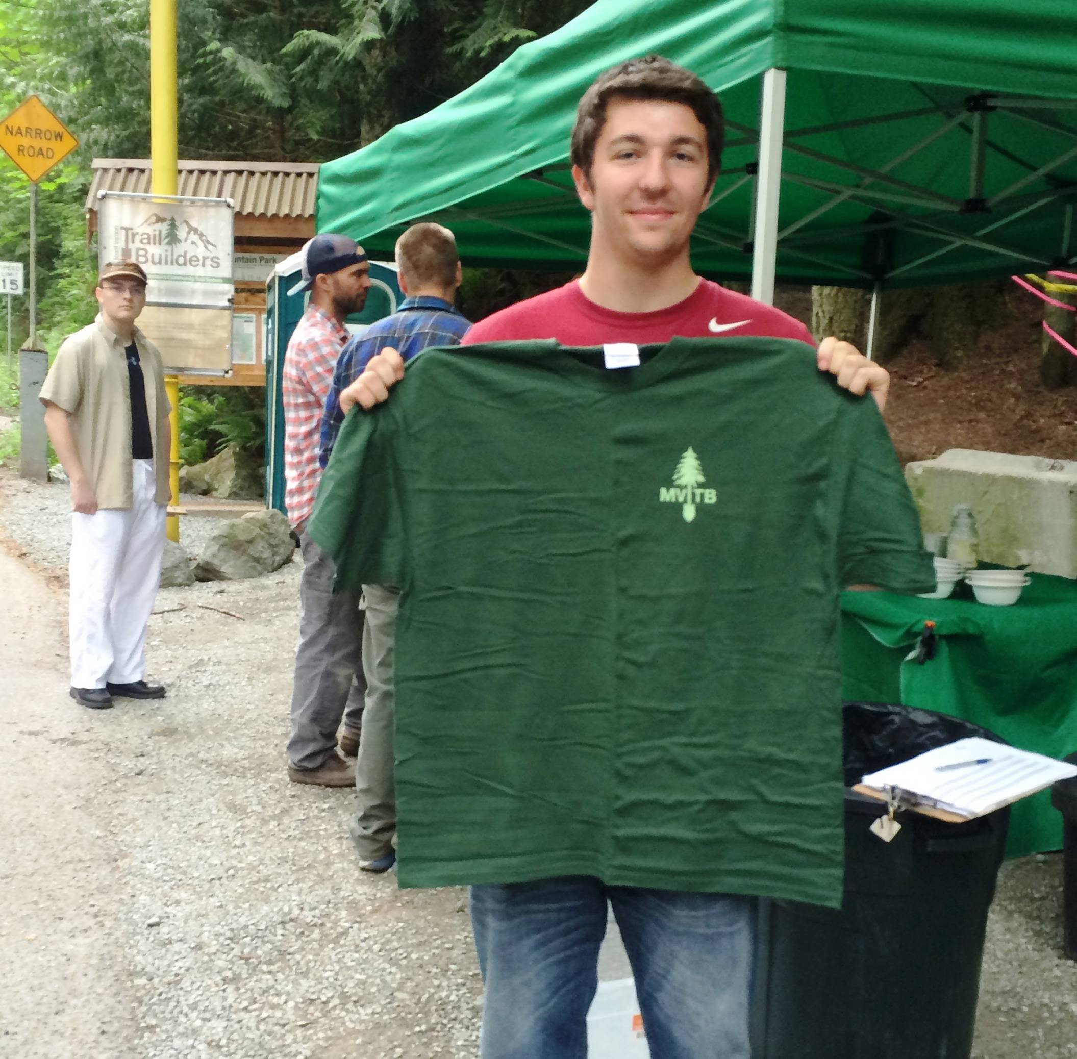 In this fourth photo (below) Evan Clasen holds up the MVTB tee shirt he just finished earning. Another great volunteer.