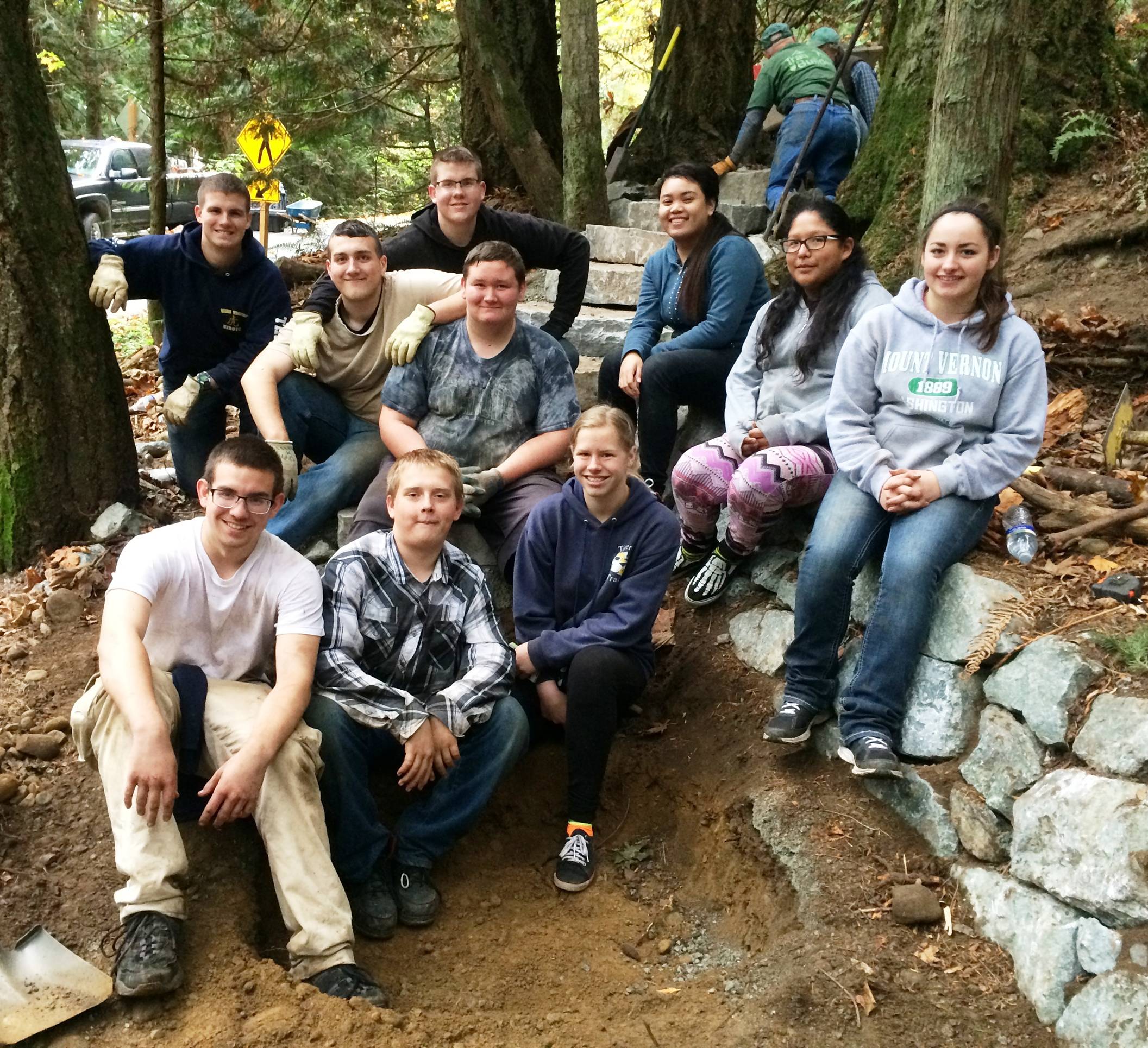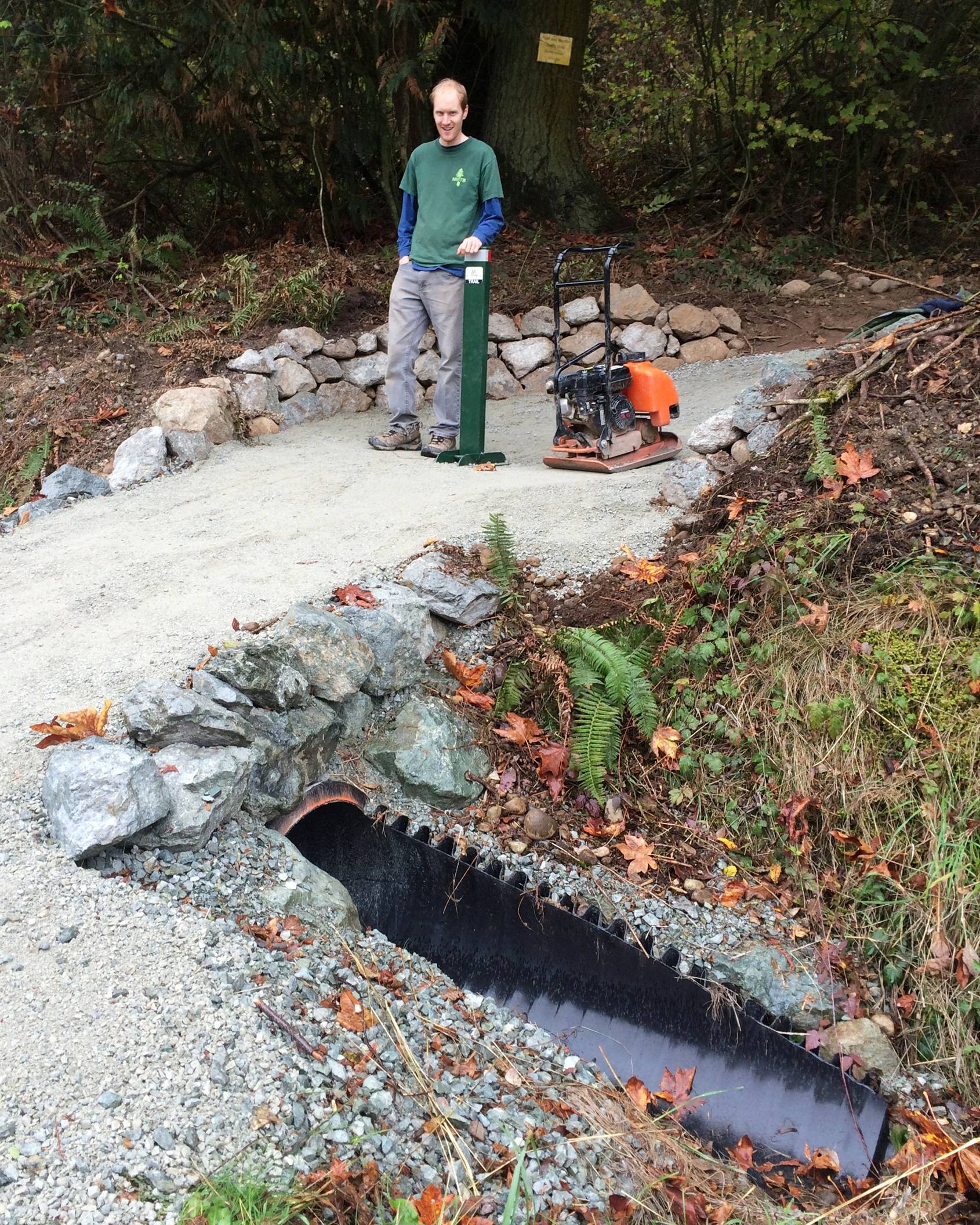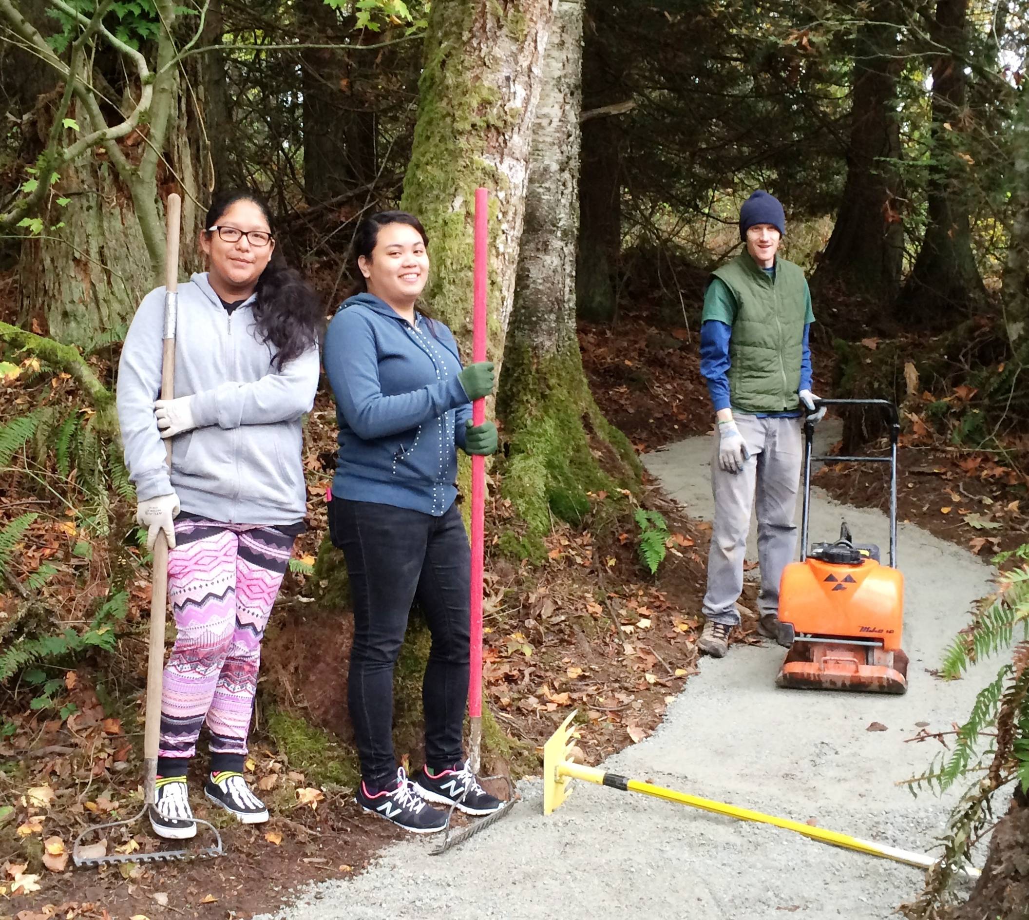 In this second image (below) you’ll see one of our three work groups. They finished capping the pedestrian trail where it connects to Little Mountain Road.