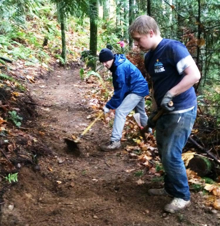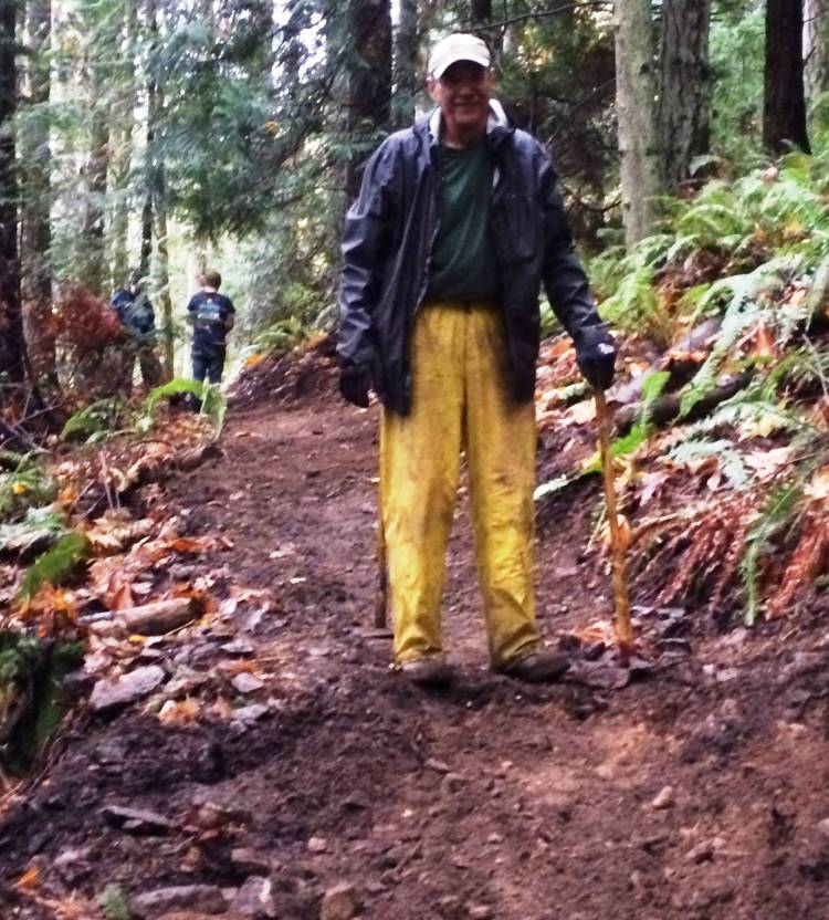 Below John stands on the trail called Rooty. We worked on the north end of this trail extension. In the background you can see Bret and Nicholai.