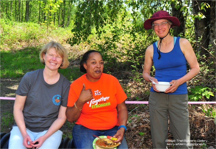 Pictured above, from left to right: Leslie Estep, Germaine Kornegay and Gretchen Cohan. My guess is that Germain’s thumbs up was all about Leslie’s amazing lunch. Thanks Leslie and Roger, hard work and great food go together!