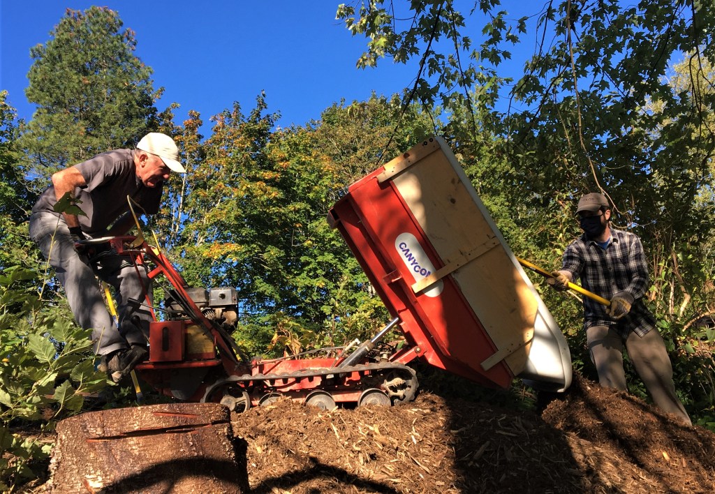 For another session our two teams will work separately. Art Tuftee, Concept Construction LLC, and his team are building the Hill Creek Bridge – as we’re finishing up at the pond.