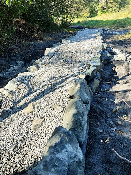 - Moved a whole lot of rock and gravel to build up the section of trail prone to flooding