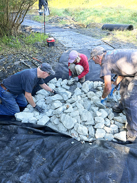 - Laid landscape cloth, set base rock and placed 4 more culverts