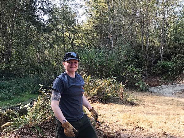 Lynn and her team worked on clearing blackberries at the creek side meadow, opening up the view but leaving ferns and trees in place to maintain the shade and cover for residents of that clear, cool waterway.