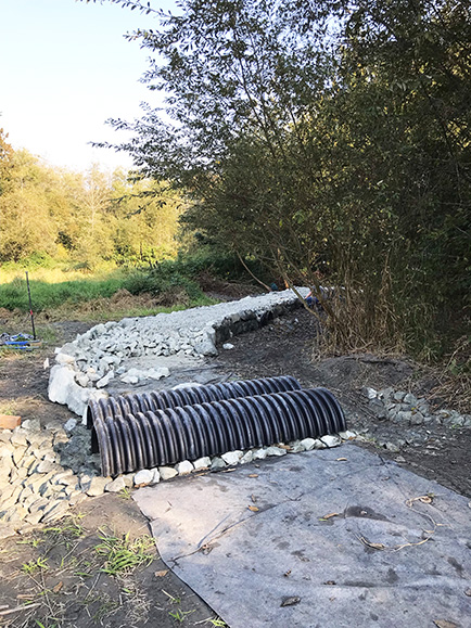 As of Saturday (Oct 8) we’ve built up about 350 feet of the 500 foot section of trail prone to winter floods. There are 7 culverts in place and only 3 left to go.