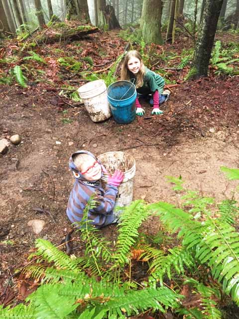 - Extending the trail: Art and 3-4 team leaders will guide the work of clearing more trail – trimming branches, cutting brush, digging ferns, raking tread. We need lots of people for this. This is lighter work than rock; great for families!