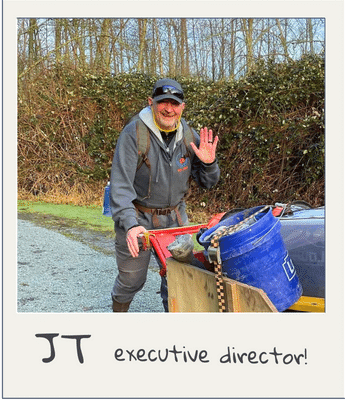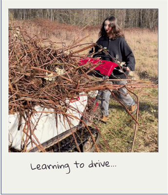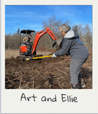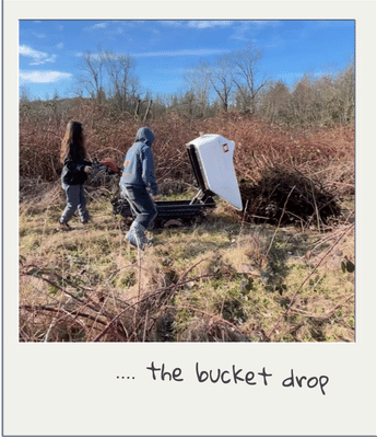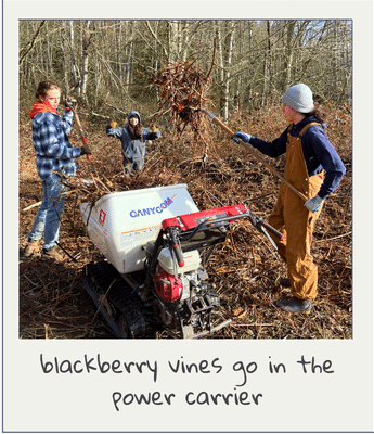 This was a very satisfying work party. Art pulled out blackberries with the excavator. Lydia and JT cut blackberries with weed whackers. The rest of the crew raked, loaded, dumped, drained, and leveled (the trail, that is 😆).