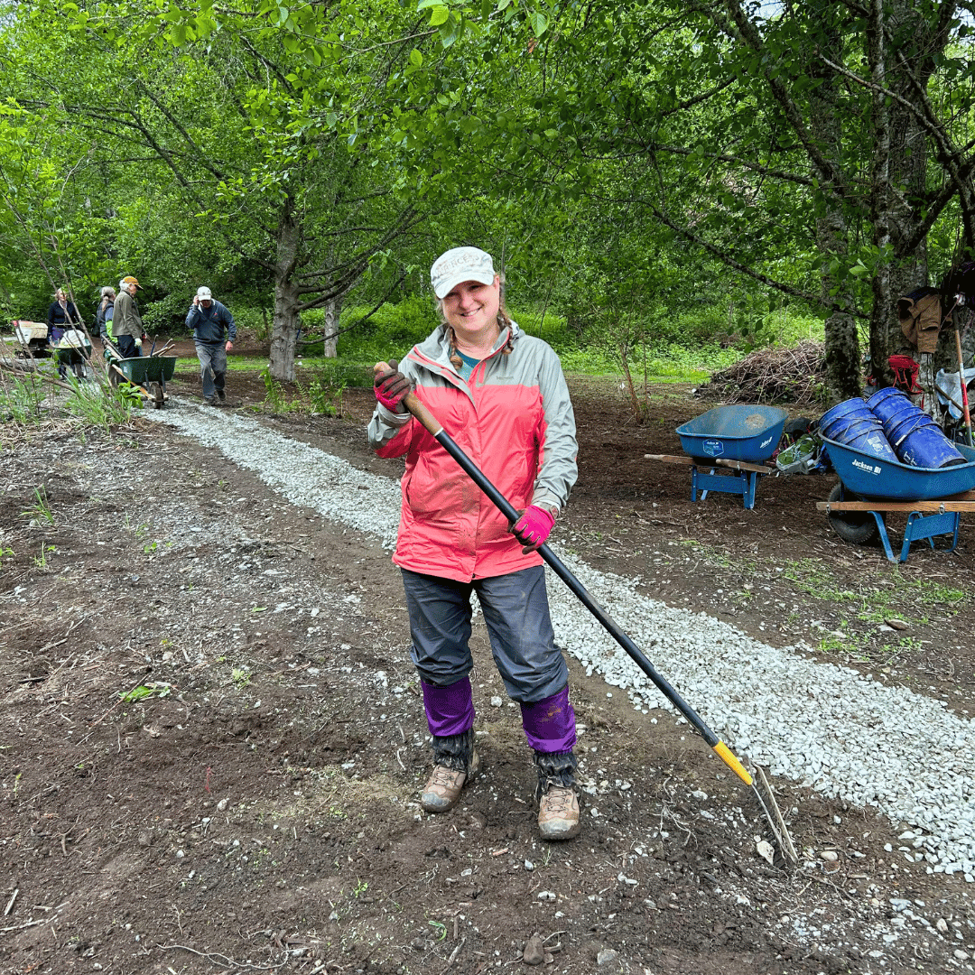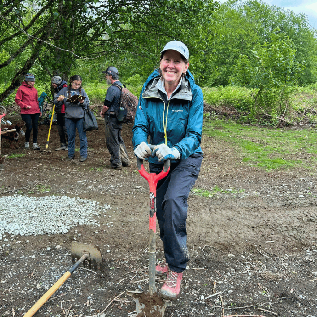 Liz has been a long-time supporter of Skagit Trail Builders, dating back to our time at Little Mountain Park. Volunteering on our trail work crew aligns perfectly with the course’s stewardship requirement. It also introduces participants to a beautiful new location for easy hiking!