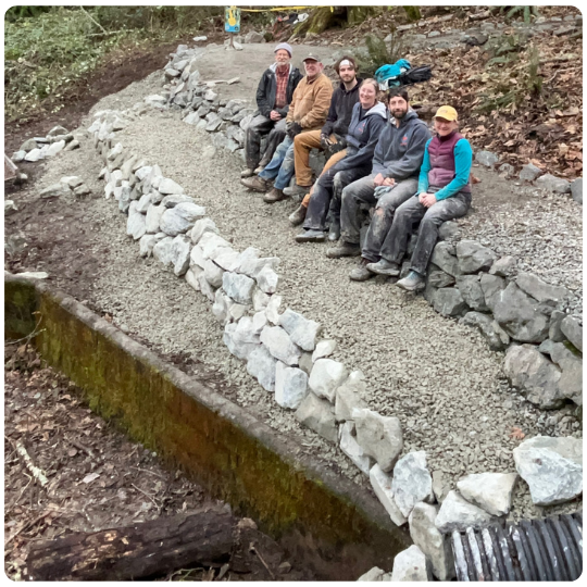 On Saturday Dec 14, 2024, twenty-four volunteers joined us for a day of rock work and community connection. We had three teams in play: