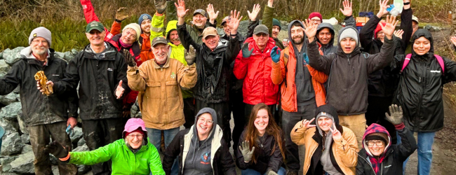 We expect rainy weather, so wear layers, a raincoat, and sturdy shoes. Bring your own lunch and water. We’ll have hot drinks at the trail head.