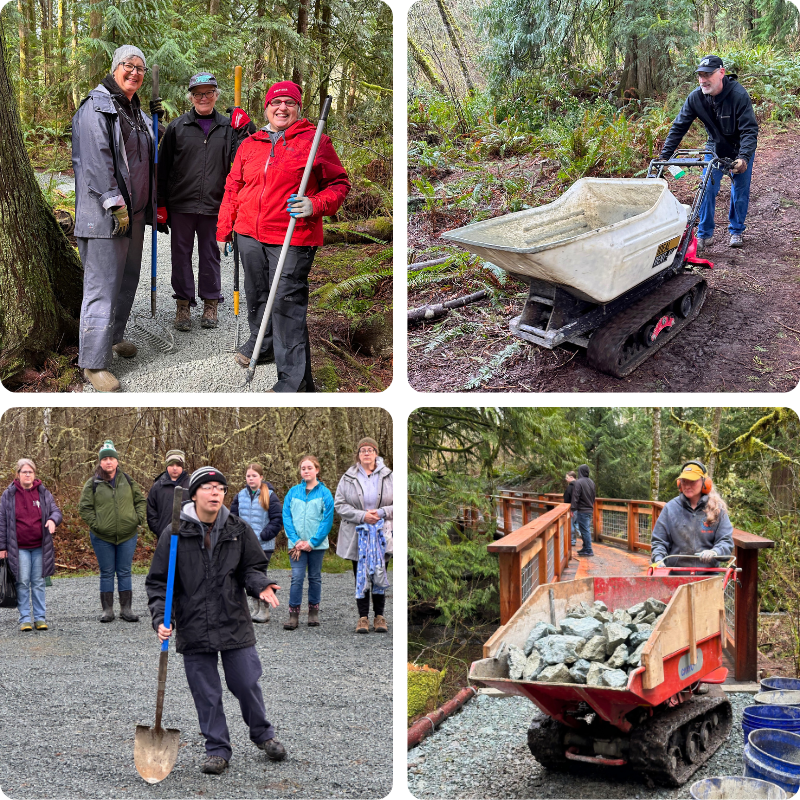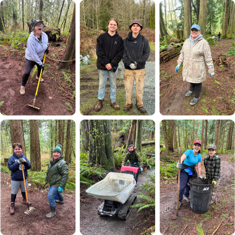 We’ll be continuing the work on April 12, 2025. Building trail is good dirty fun that makes a real difference for the community! All ages, sizes, and skills are encouraged to join in.