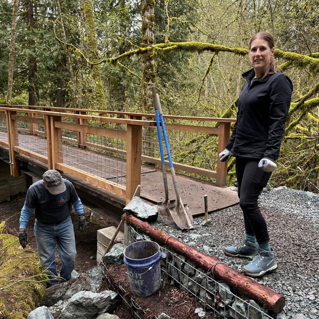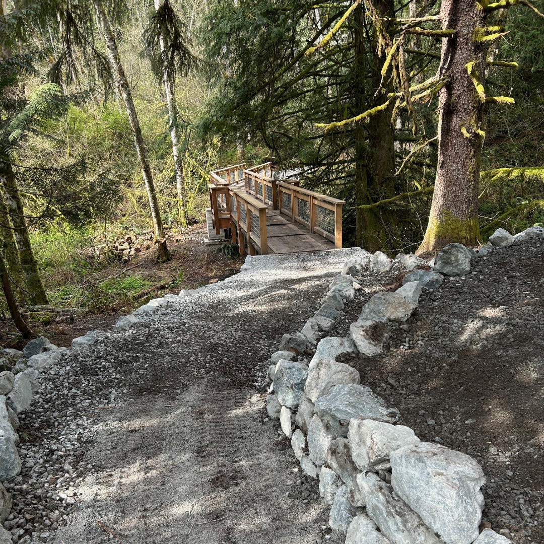 - Rock sand capping was completed from the wind phone to the junction with the Song Sparrow Bridge connector trail