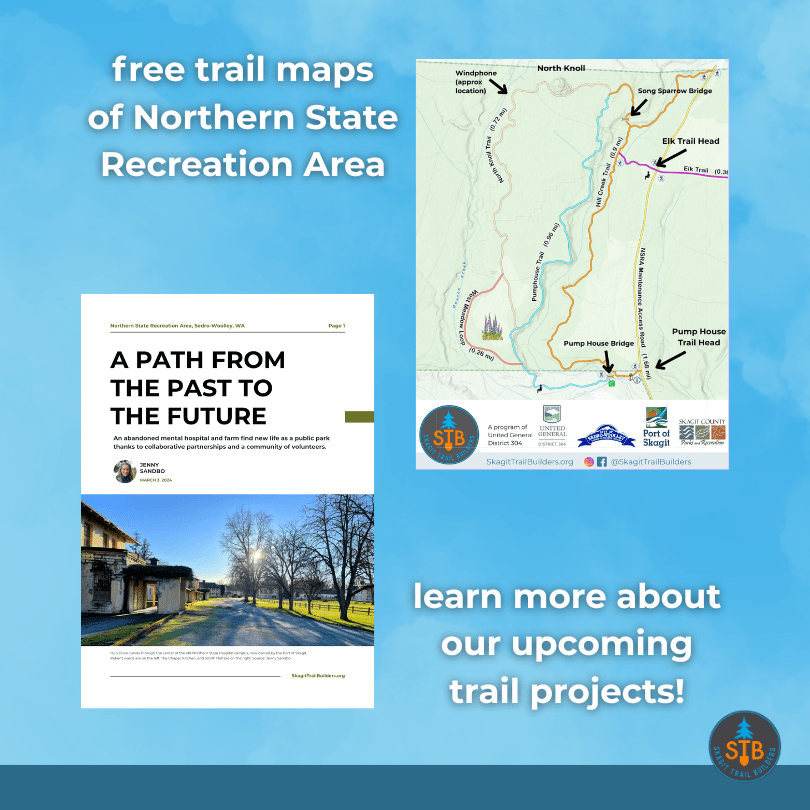 Volunteers from Skagit Trail Builders will be handing out free maps of Northern State Recreation Area and sharing our future trail plans.