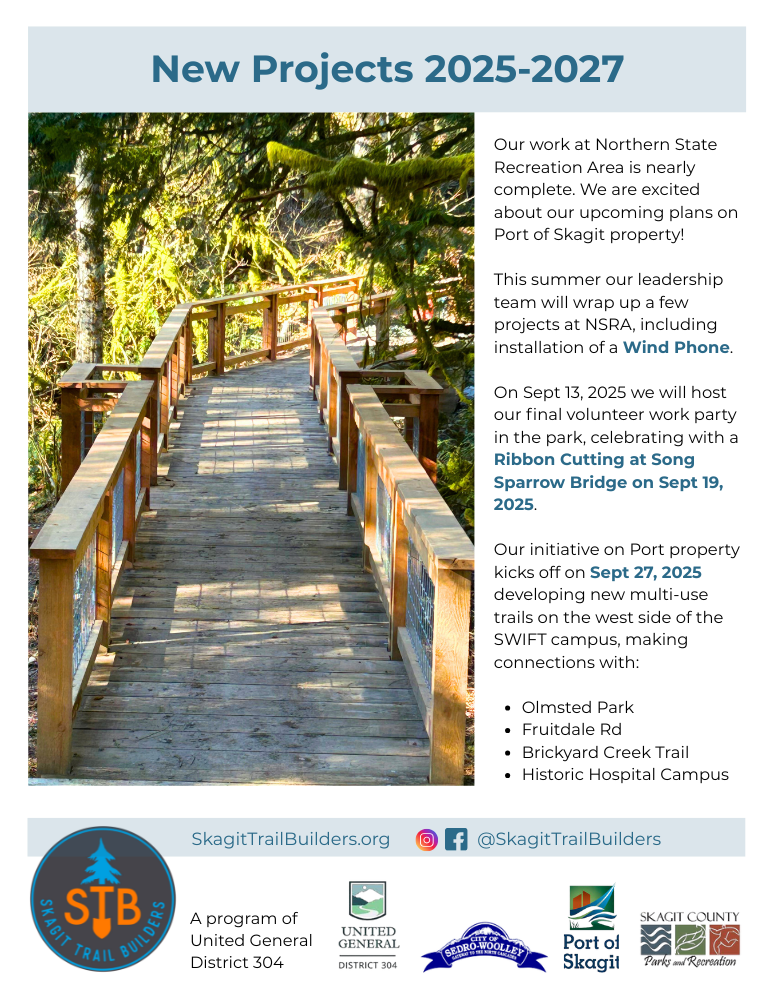 The trails at Northern State Recreation Area are the result of our partnership with Skagit County Parks and Recreation, the Port of Skagit, the City of Sedro-Woolley, and our incredible community of volunteers!