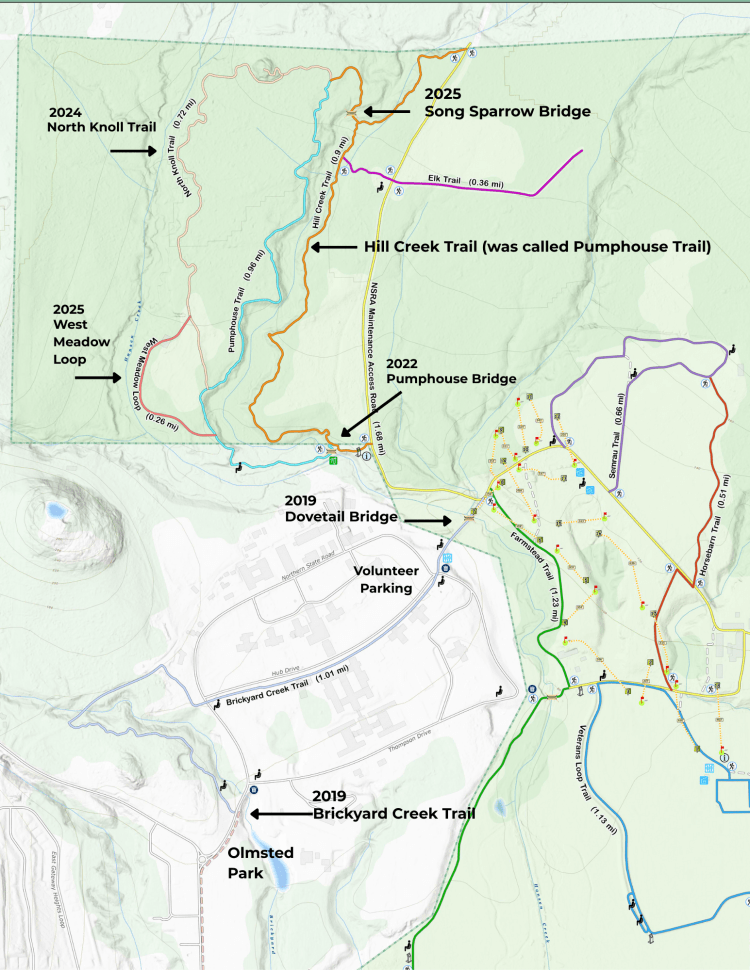 We are proud of all our work, but Song Sparrow Bridge and the connector trails mark a wonderful conclusion to the effort invested in the community trails at Northern State, creating a series of loops that offer users various options for access, length, and time.