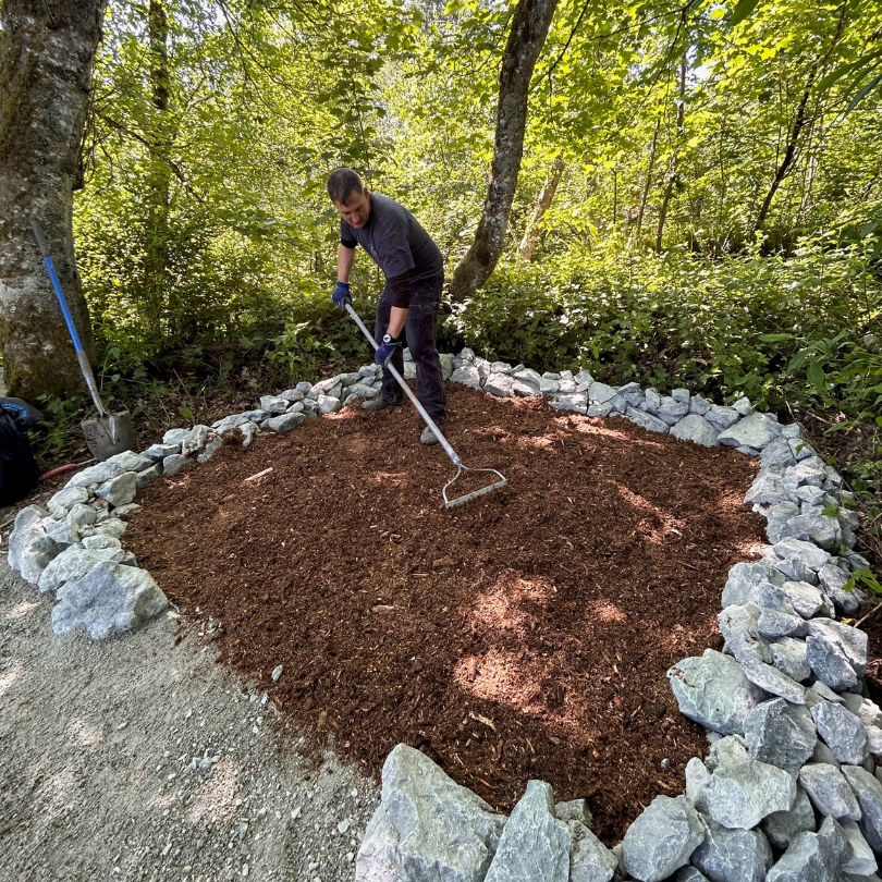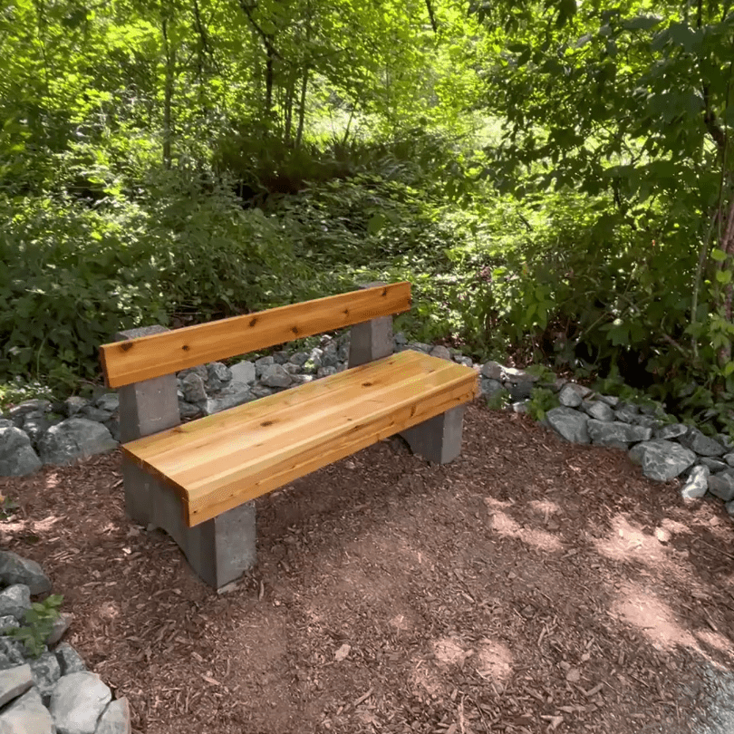 On the Pumphouse Trail, we built three bench sites where visitors can rest and enjoy views of Hansen Creek, Hill Creek Meadow, and the Beaver Pond (the benches were built and installed by the Port of Skagit).