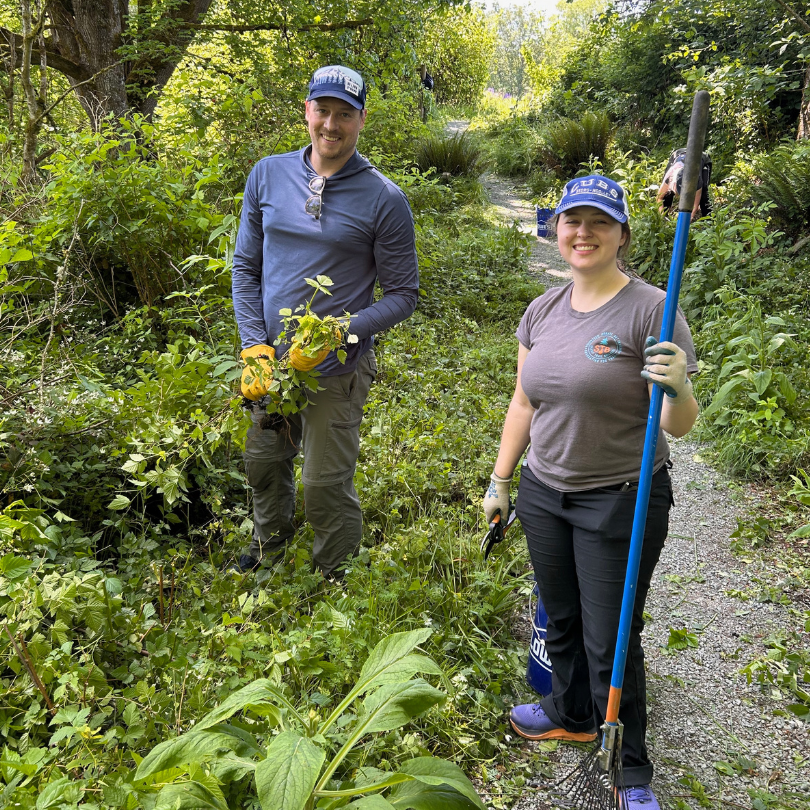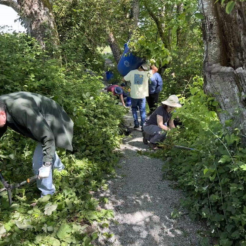 We were joined by stewardship volunteers from the Seattle Mountaineers, who focused on vegetation management. They removed invasive blackberries, trimmed low-hanging branches, cleared plant debris, and reclaimed trail width along all the trails: Pumphouse, North Knoll, West Meadow Loop, and Hill Creek Trail.