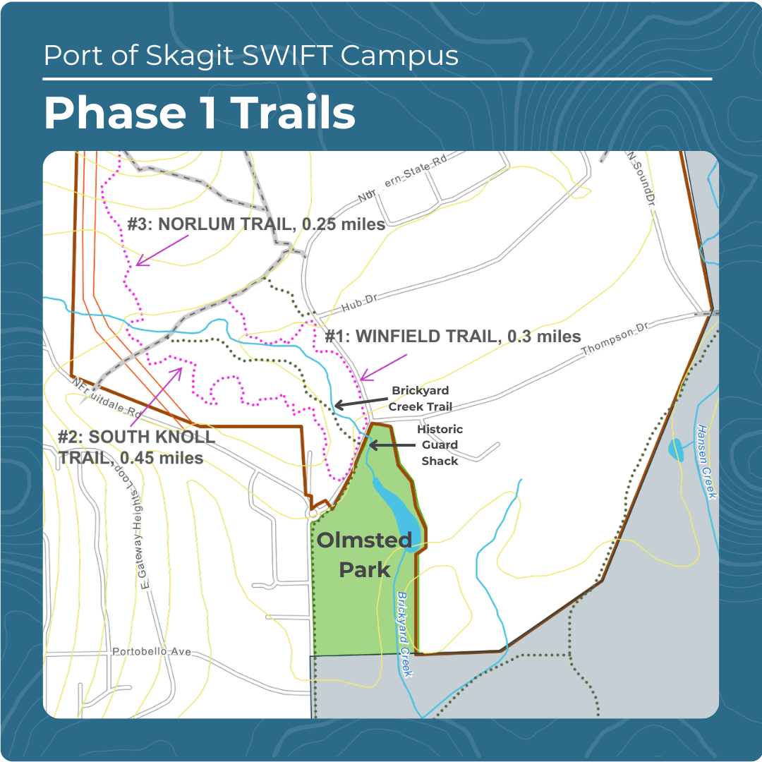 We’re nearly done with the first segment of the Phase 1 trails at Port of Skagit SWIFT Campus.