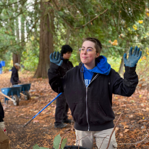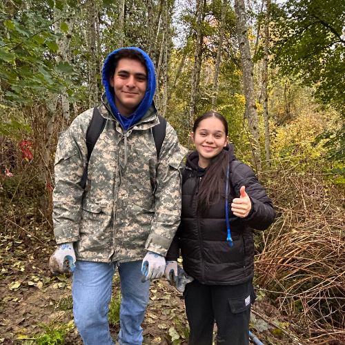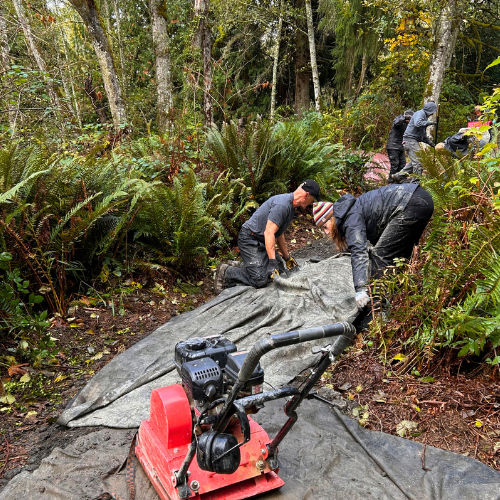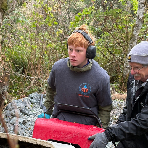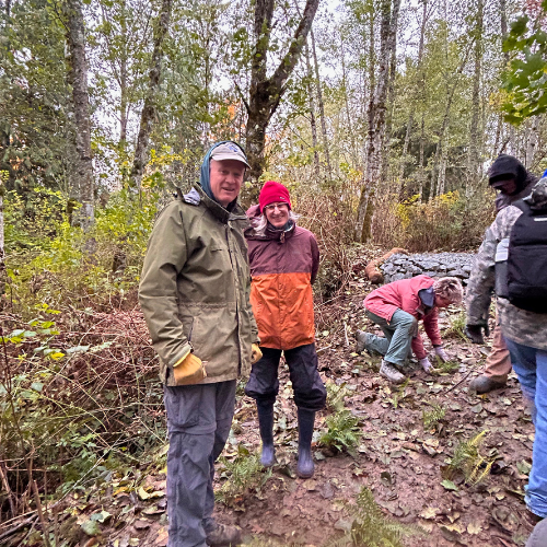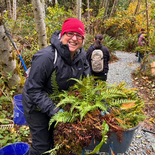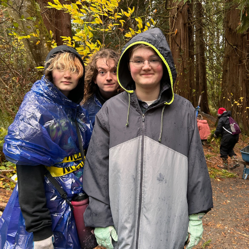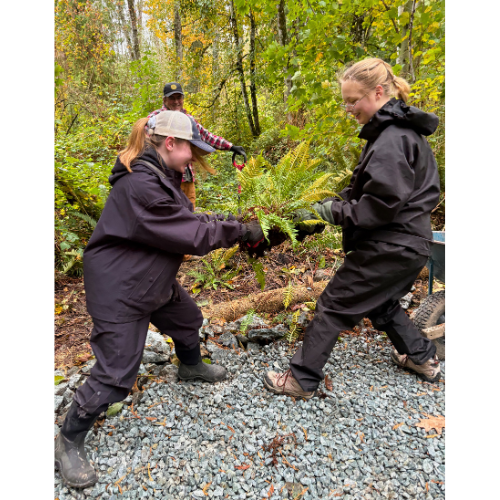 We were thrilled to have an excellent turnout of student volunteers from Sedro-Woolley High School, including members of the Earth Club. Before the storm paused our progress, the students transplanted over 100 ferns for trailside restoration – impressive work!
