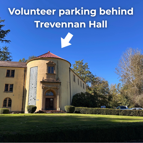 8:45 am Sign-in at the trailhead: Please note the new parking area for volunteers is located on the gravel road behind Trevennen Hall.