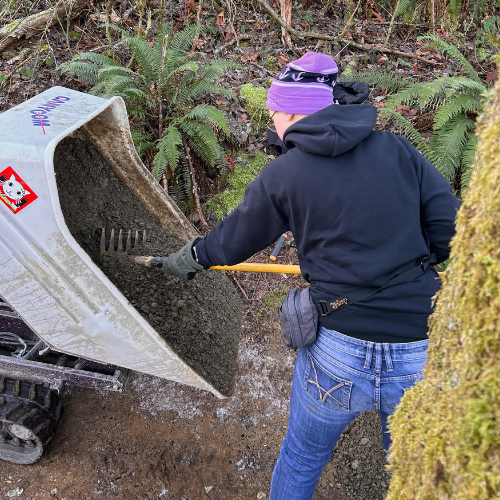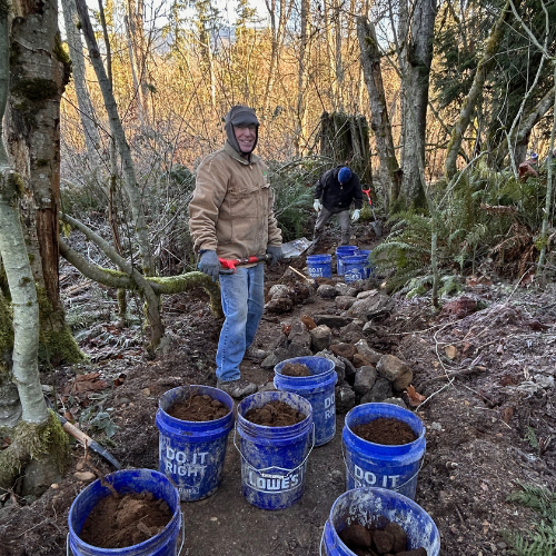 We had a late-breaking change to our work party plan, shifting our focus from final capping on section 3, to prep, rock walls, and restoration on section 2. (Love those kind of details? (Read the full report).