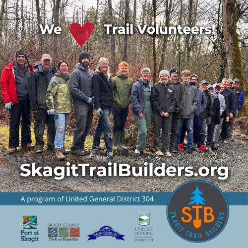 The trails at Northern State Recreation Area are the result of our partnership with Skagit County Parks and Recreation, the Port of Skagit, the City of Sedro-Woolley, and our incredible community of volunteers!