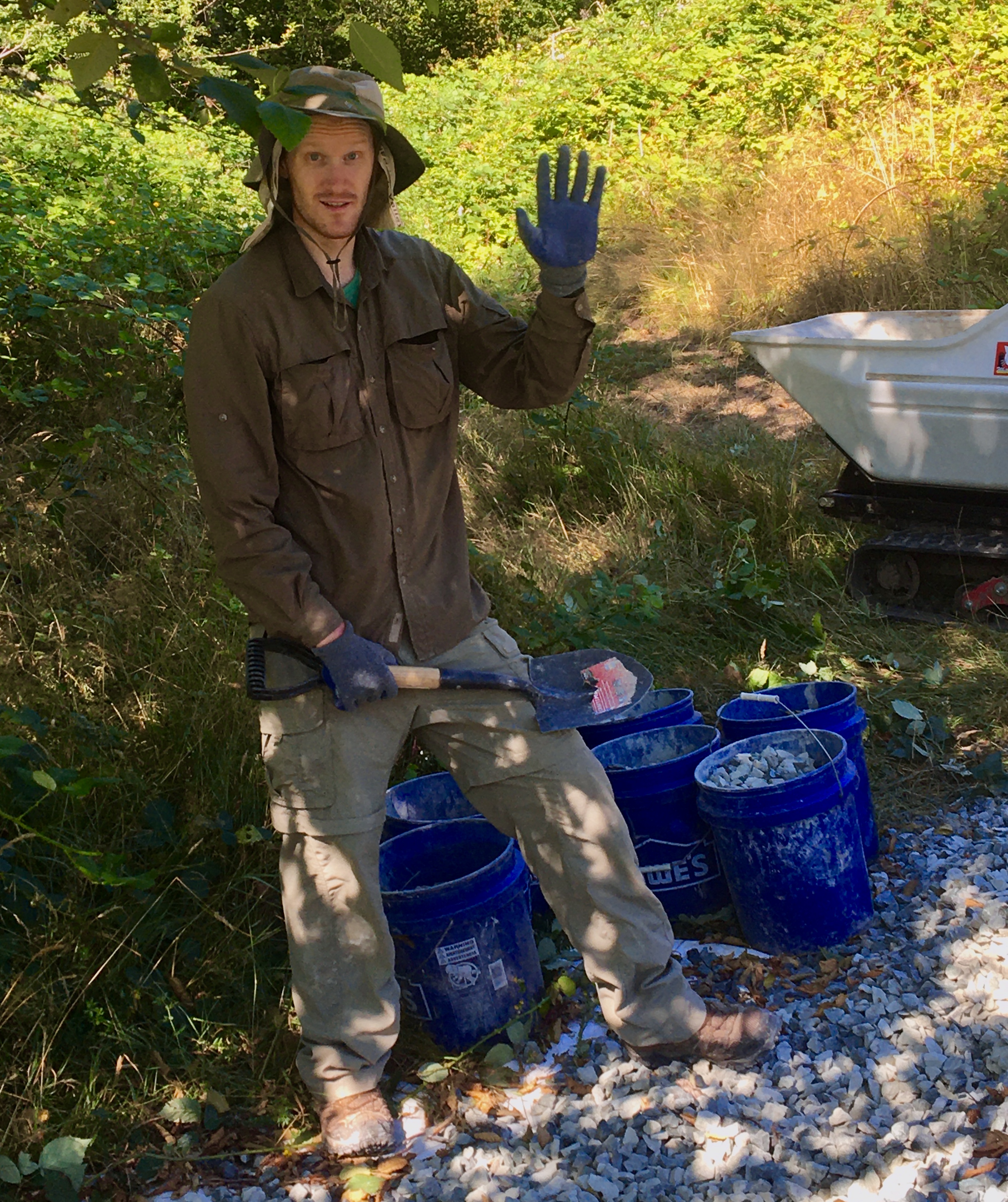 Bret loads rock in buckets…
