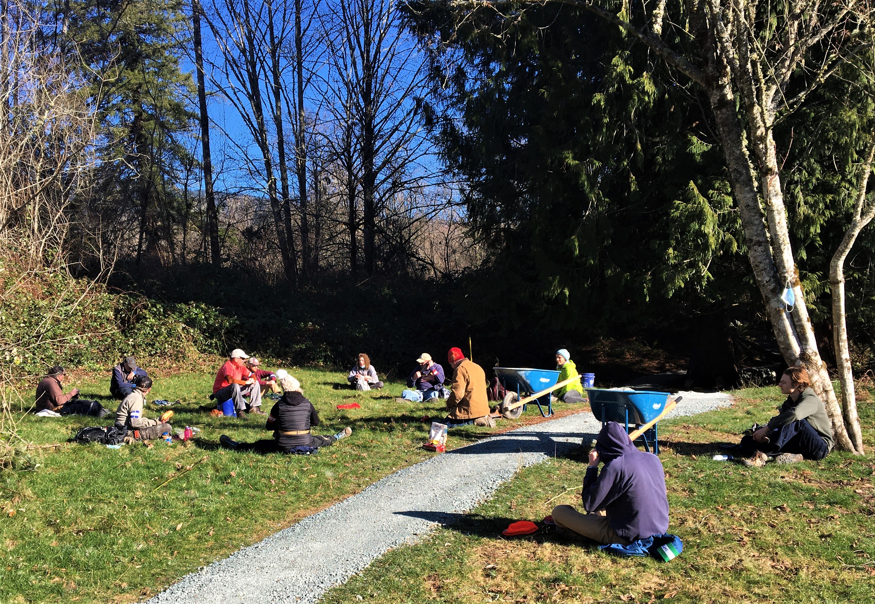 January 23, 2021 – Capping and Restoration The view of our lunch at the first meadow… Compacting rock… Cutting blackberries… The second meadow… Lunch continued… Lunch continued… Art planning dessert… Another great session, thanks everyone! Like Loading...